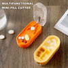 Multifunktionell: Vår pillerkniv för små piller 1/4 har 3 inbyggda förvaringsfack för piller som rymmer 4 ~ 8 piller vardera. Denna pillerkniv integrerar de dubbla funktionerna för pillerskärning och pillerförvaring. Den kan inte bara skära ut piller utan har också utmärkt tätning och vattentät prestanda som en pillerlåda.