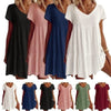 Stor -Sized Cotton Mixed Compound V -Neck Loose Woven Dress korta ärmar