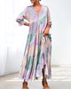 Paketet inkluderar: 1 x Färgglad blocktryck klänning med 3/4 ärmar