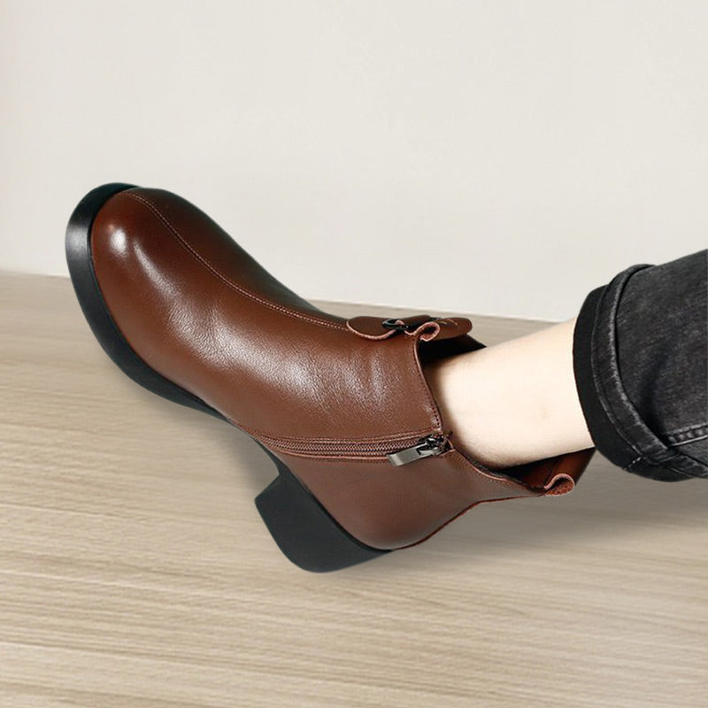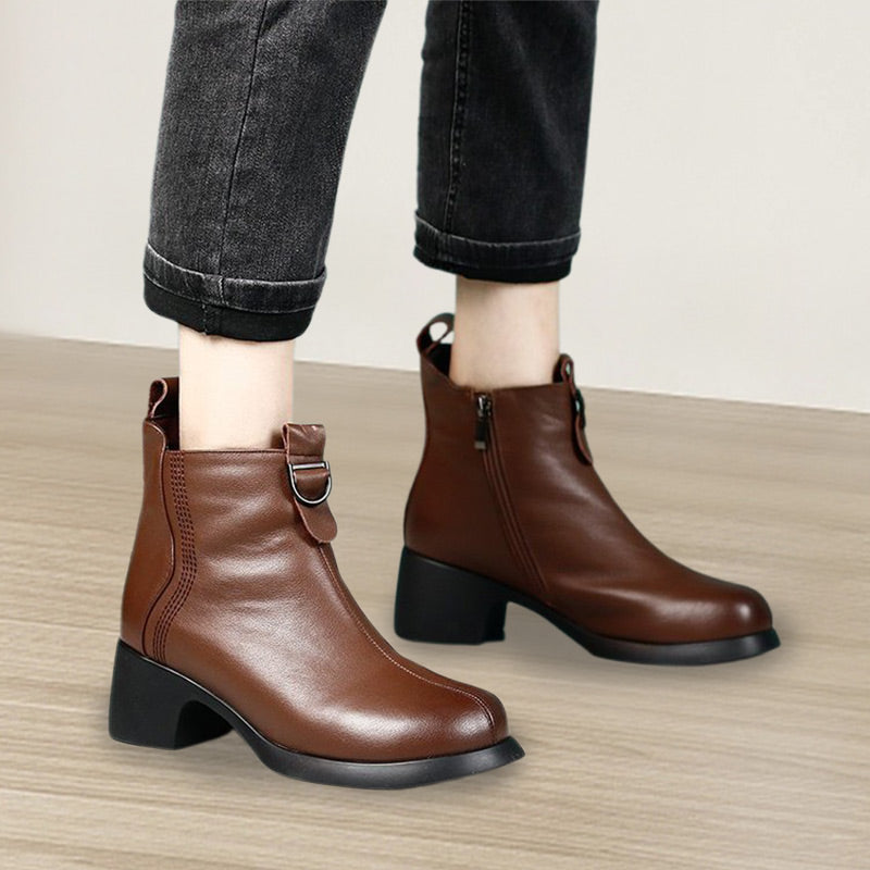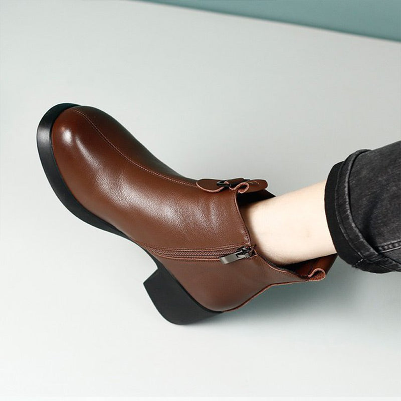 KLASSISK RETRODESIGN: Omfamna vintagestilen med dessa ankelstövlar med rund tå i retrostil. Den tidlösa designen ger en chic touch till alla outfits, vilket gör dem perfekta för avslappnade utflykter eller finare tillställningar.