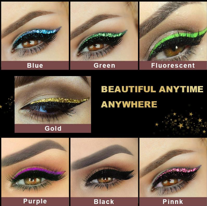 Återanvändbara självhäftande klistermärken för eyeliner och ögonfransar med glitter