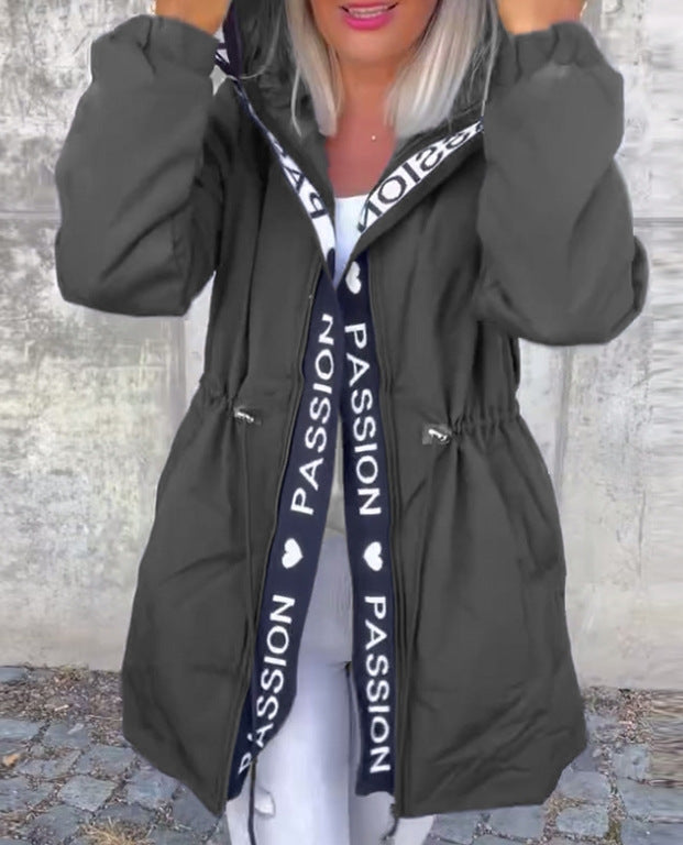 Trendig huvjacka med dragsko i midjan för kvinnor