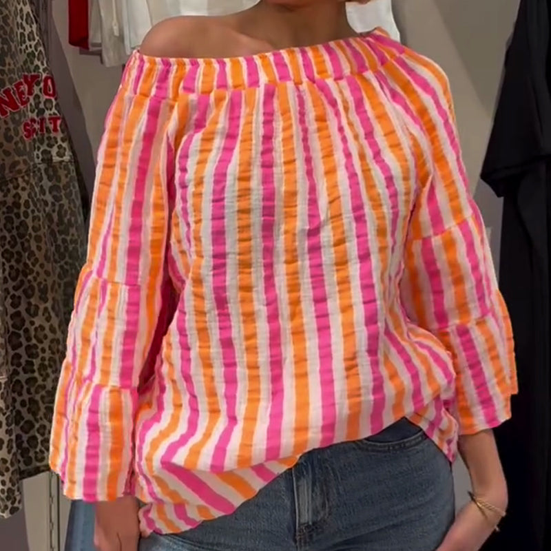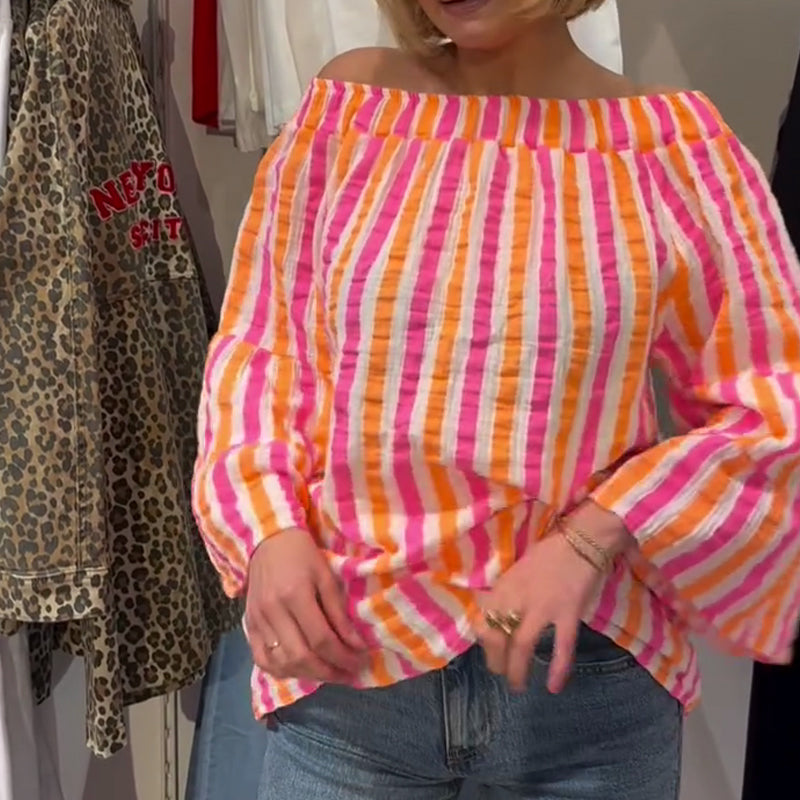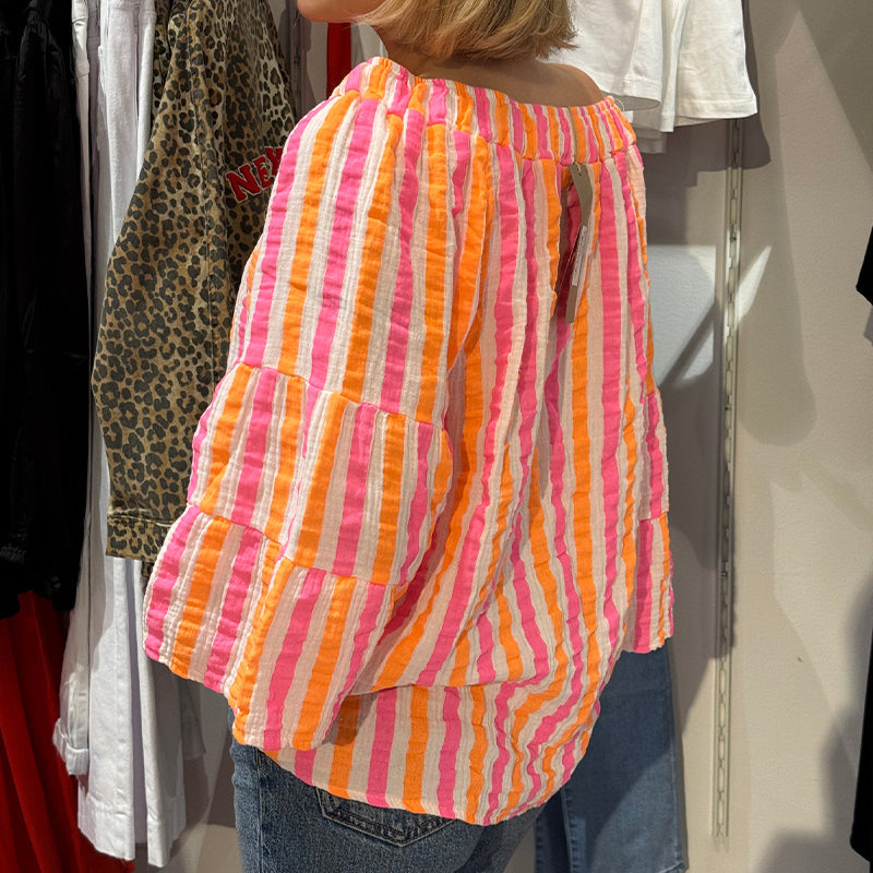 LÄTT ATT STYLA: De livfulla rosa och orangea ränderna gör denna topp till ett iögonfallande plagg som enkelt kan kombineras med jeans, kjolar eller shorts. Klä upp eller ner den för alla tillfällen.