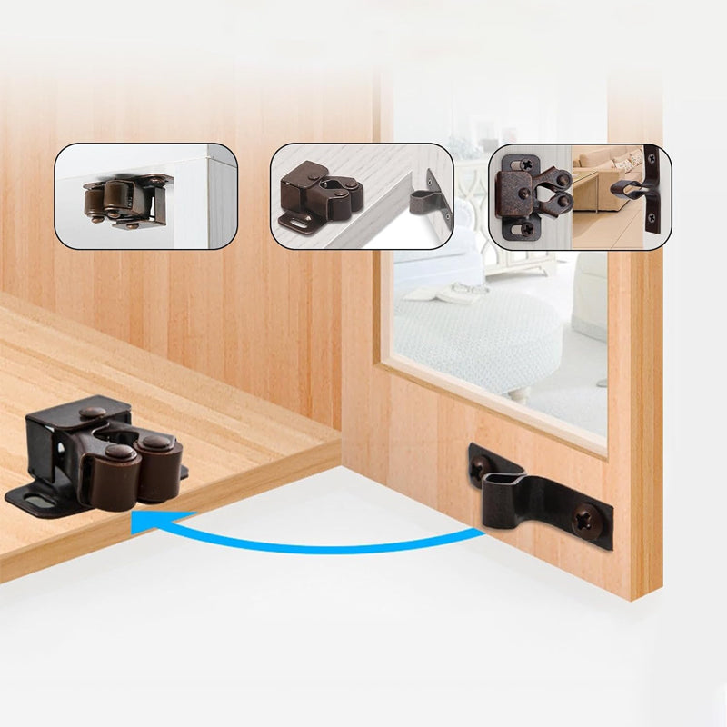 PASSAR TILL ALLA TYPER AV SKÅPSDÖRRAR - Oavsett om du har sovrumsskåp eller köksskåp passar denna dubbla rullspärr till alla typer av skåpsdörrar. Den erbjuder mångsidig kompatibilitet, vilket gör den till ett praktiskt val för alla skåp i ditt hem.