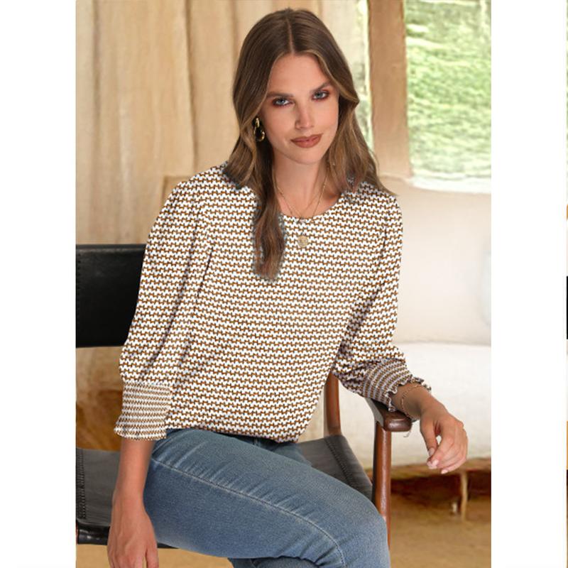 🔥Rea 50% RABATT💝✨Eleganta, avslappnade blusar med 3/4-ärmar och smockade manschetter för kvinnor