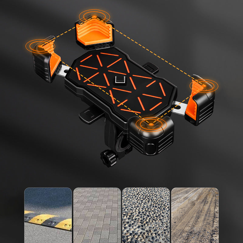 STĂTSKYDD - Denna hĂ„llare har 5 mm tjocka halkskyddande silikonkuddar i varje hörn som effektivt absorberar stötar och minskar vibrationer. Den högkvalitativa silikonen förhindrar ocksĂ„ repor pĂ„ din telefon.