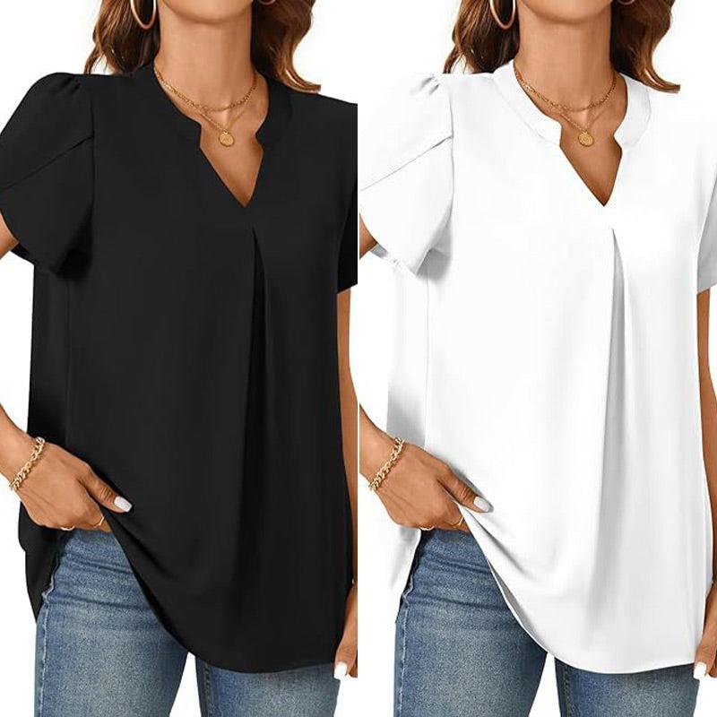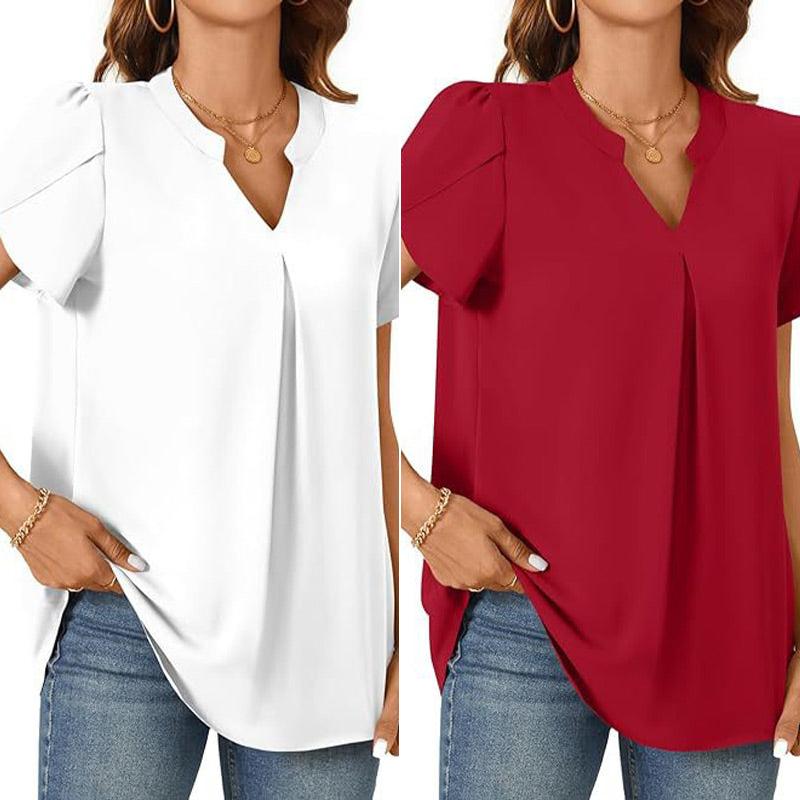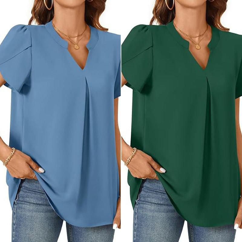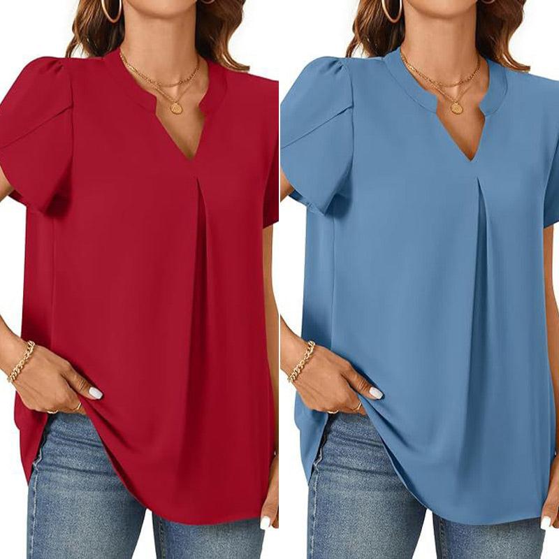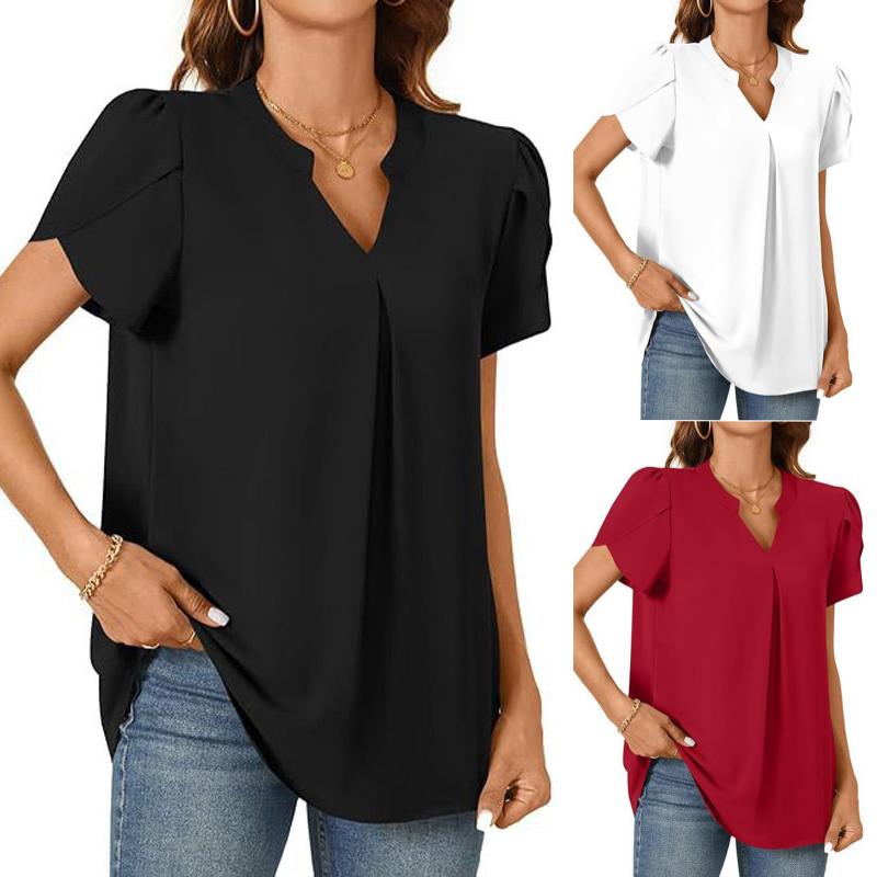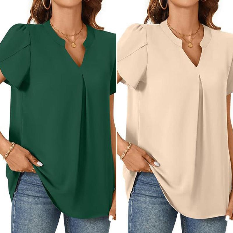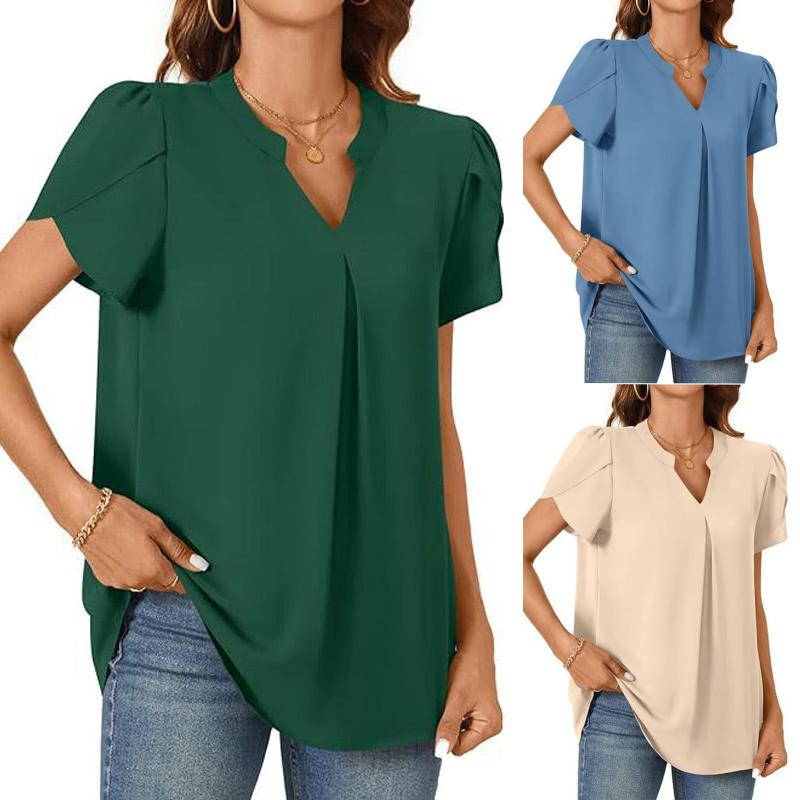 đ„2025 Varm försĂ€ljningđV-ringad enfĂ€rgad kortĂ€rmad topp för kvinnor
