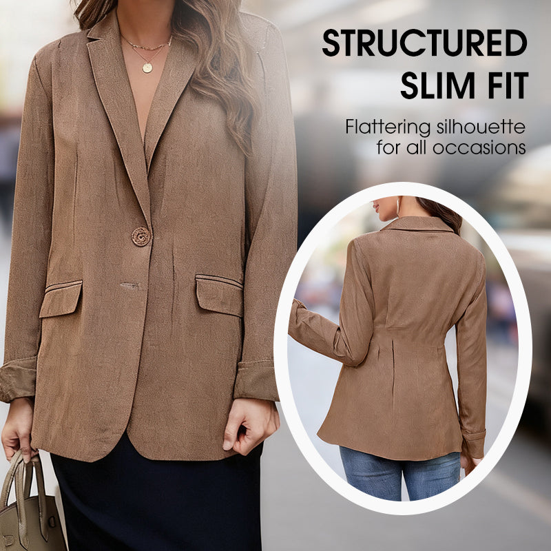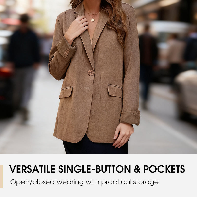 MÅNGSIDIG STYLING – Kavajen är lätt att matcha med olika plagg. Dess neutrala färger och tidlösa design matchar lätt med en mängd olika kläder, från kontorskläder som blusar och byxor till mer avslappnade plagg som t-shirts och jeans. Denna mångsidighet möjliggör många olika outfitkombinationer.