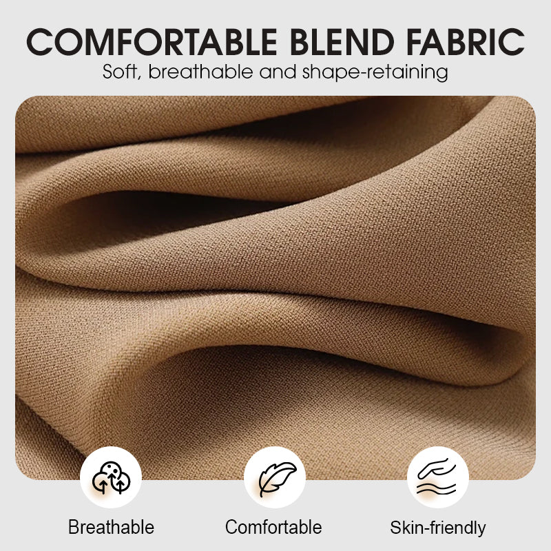 BEKVÄMT MATERIAL I BLANDVÄVNAD – Tillverkad i ett högkvalitativt blandmaterial som ger en bekväm känsla. Tyget säkerställer en balans mellan mjukhet, andningsförmåga och hållbarhet. Detta val hjälper plagget att behålla sin form och sitt utseende, lämpligt för långvarigt och regelbundet bruk.