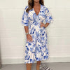Elegant V-ringad klänning med botaniskt tryck för kvinnor