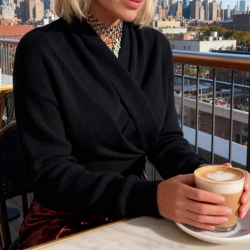 FLERA STYLINGMÖJLIGHETER – Den här omlottkoftan är designad för den moderna kvinnan och erbjuder oändliga stylingmöjligheter. Knyt den i midjan, drapera den elegant över axlarna, eller bär den asymmetriskt – den skiftar lekfullt från avslappnad vardag till sofistikerad kvällslook.