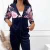 Strömd blommig design- sticker ut med unikt, iögonfallande blommigt tryck på jackan. Detta livliga botaniska mönster lägger till färsk, feminin stil till den klassiska marinblå uppsättningen och förvandlar en enkel träningsdräkt till ett förfinat uttalande.