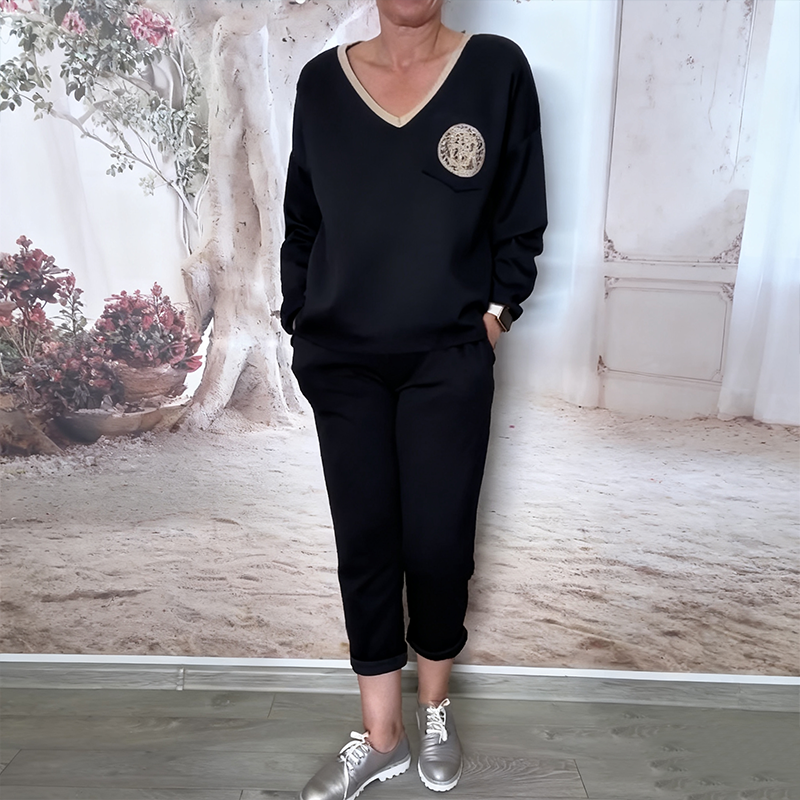 ELEGANT V-RINGAD ÖVERDEL - En klassisk V-ringad design som smickrar din urringning, komplett med en snygg dekorativ ficka för en touch av unik charm.