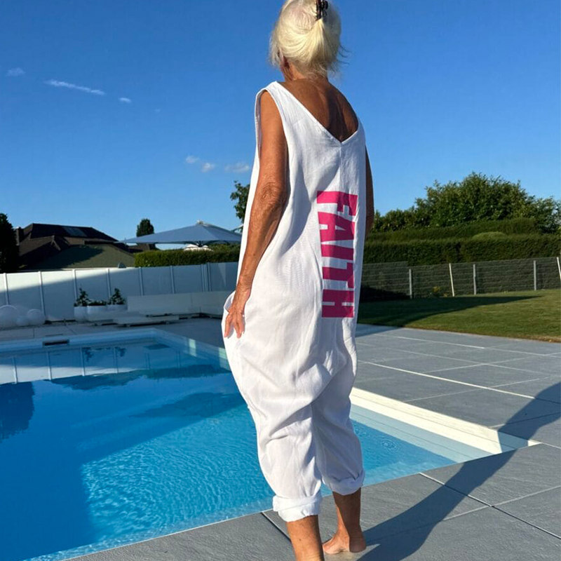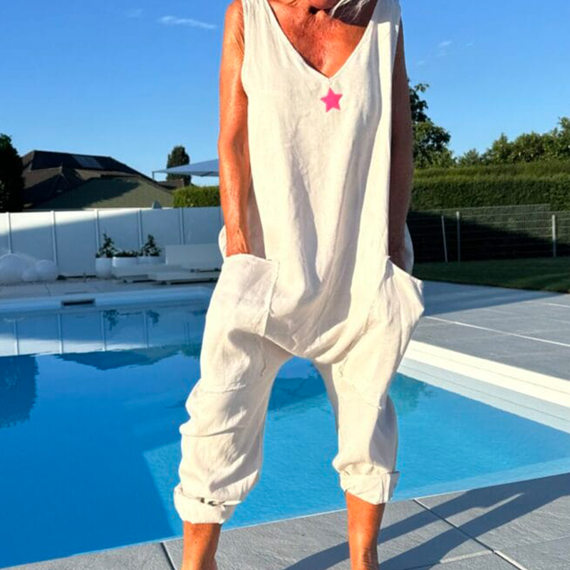 Lös V-ringad ärmlös jumpsuit för kvinnor på sommaren