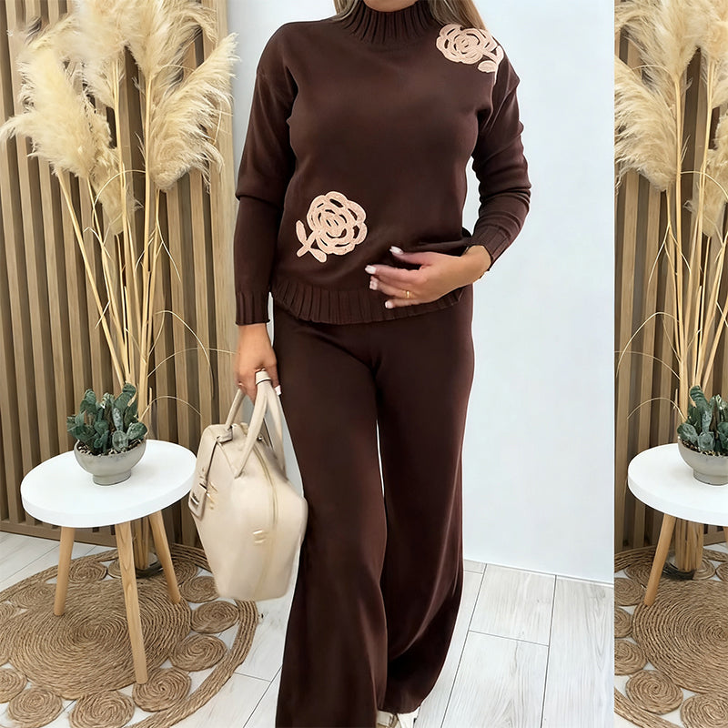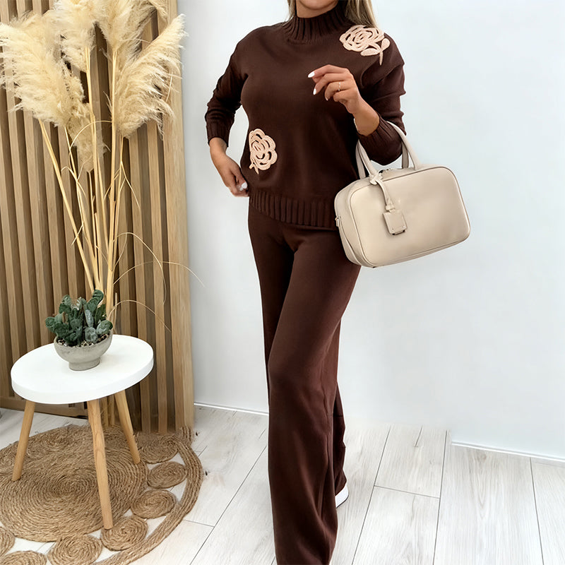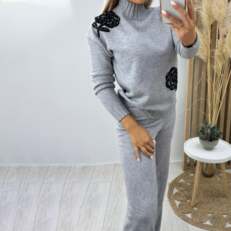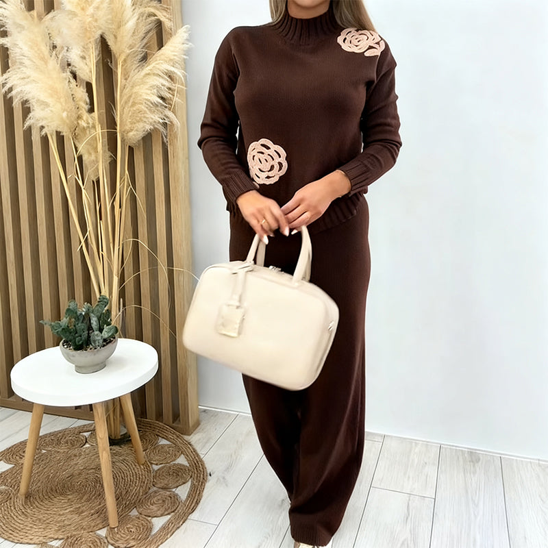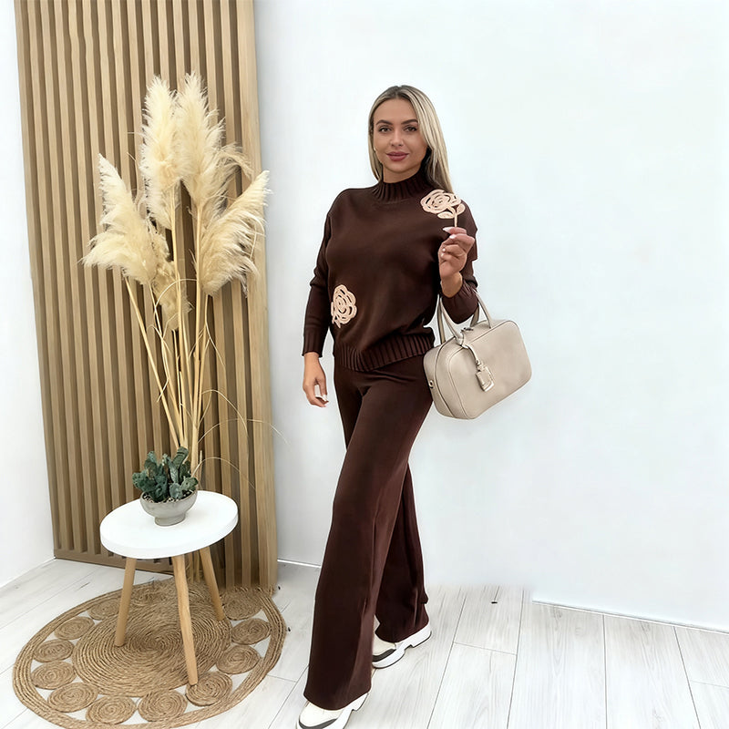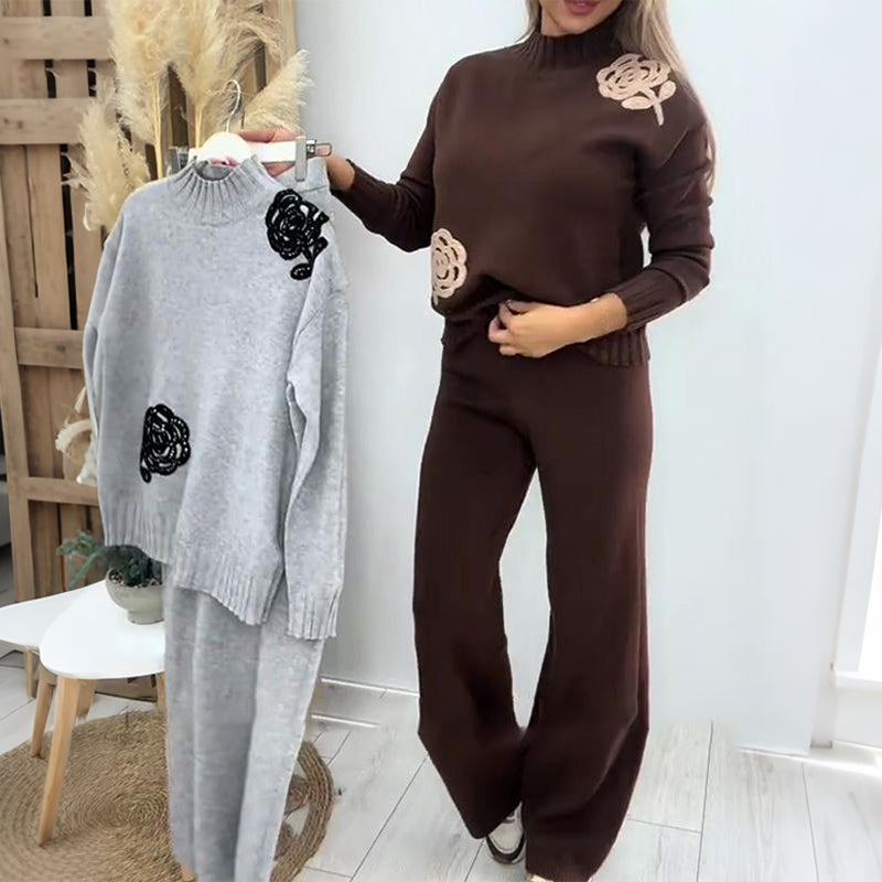 Fritidsstickad 2-delad outfit för kvinnor