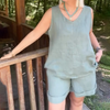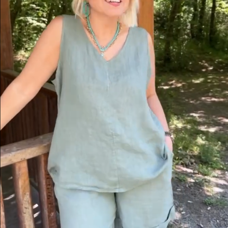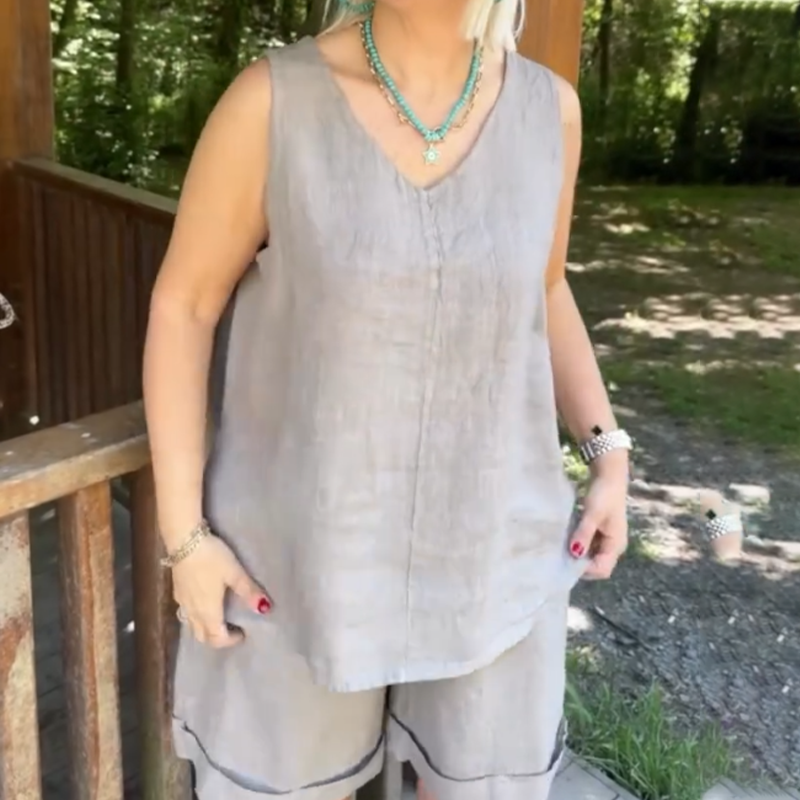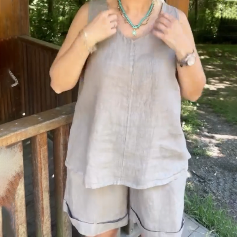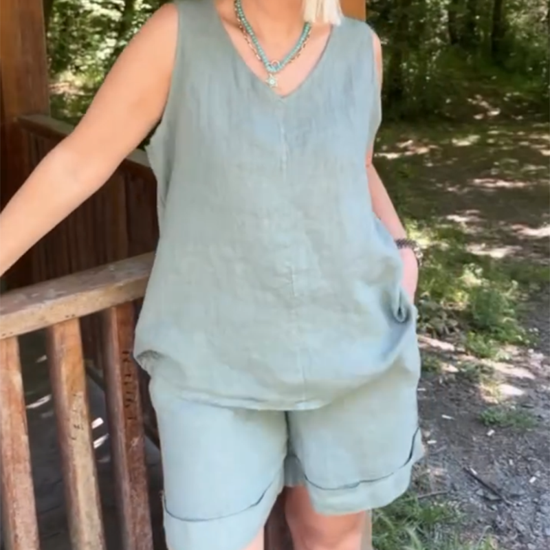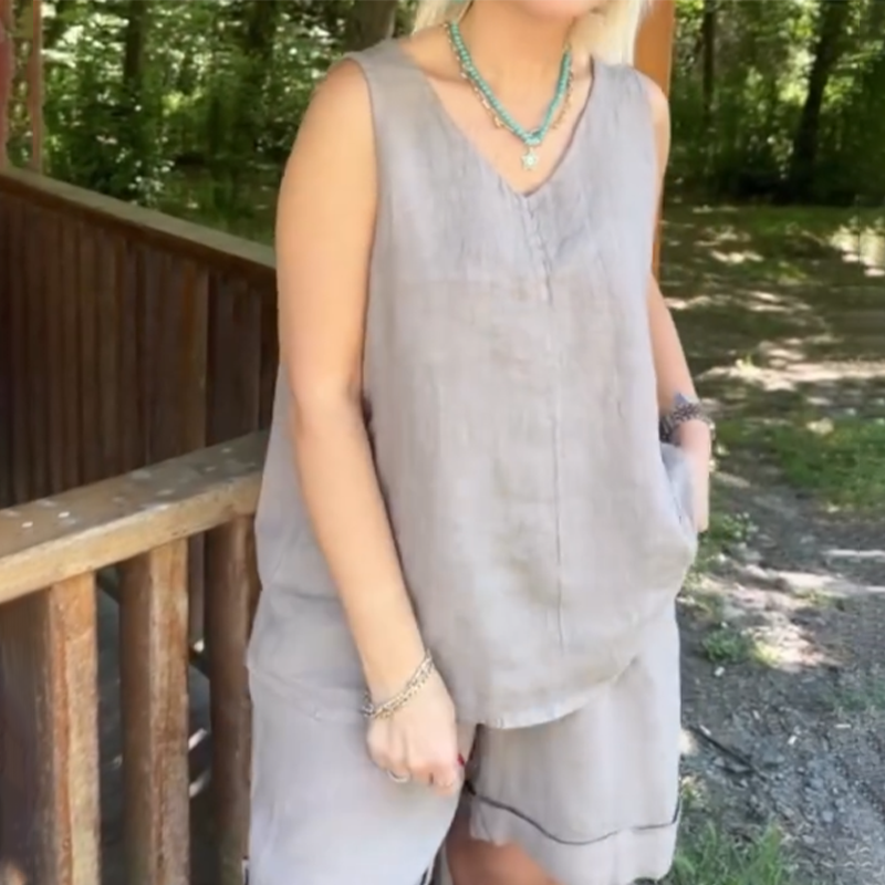 Casual V-neckad ärmlös topp och shorts för kvinnor