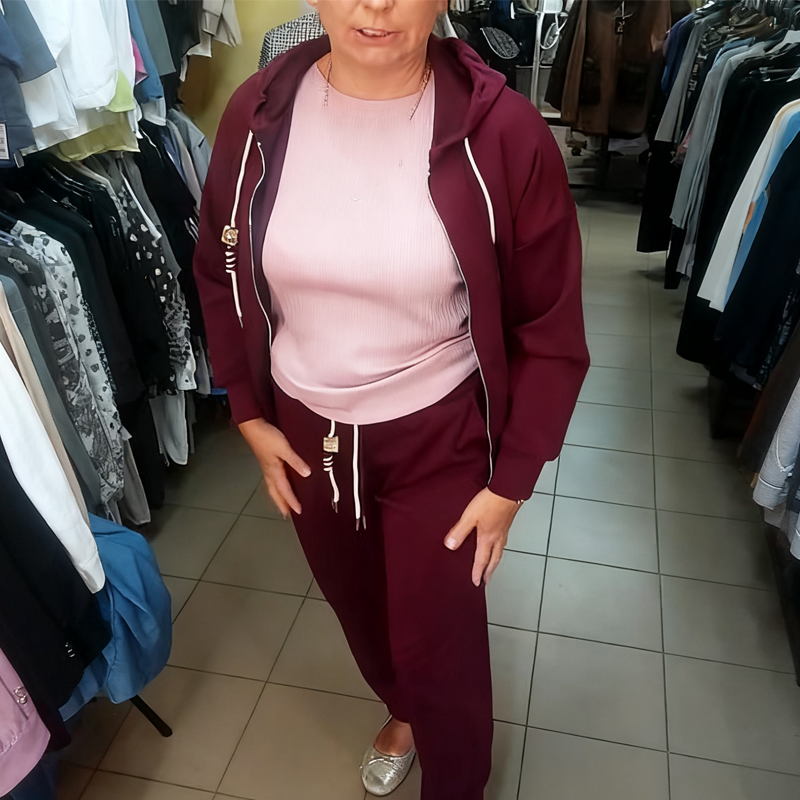 Damers Moderiktiga Träningsset: Jacka med Dragkedja och Huva och Byxor