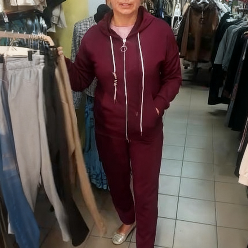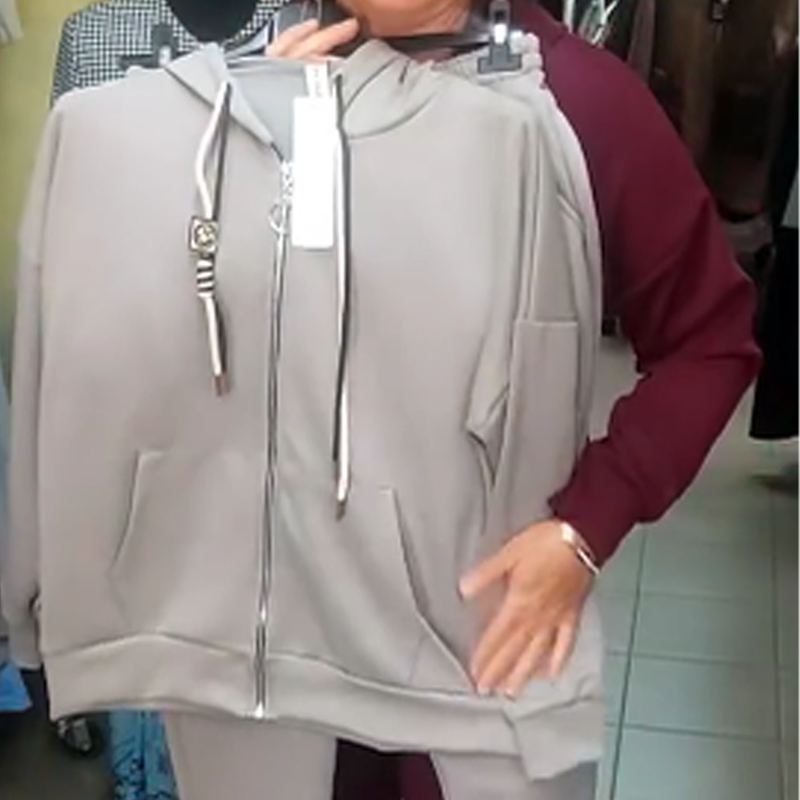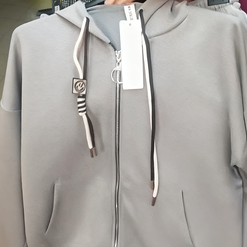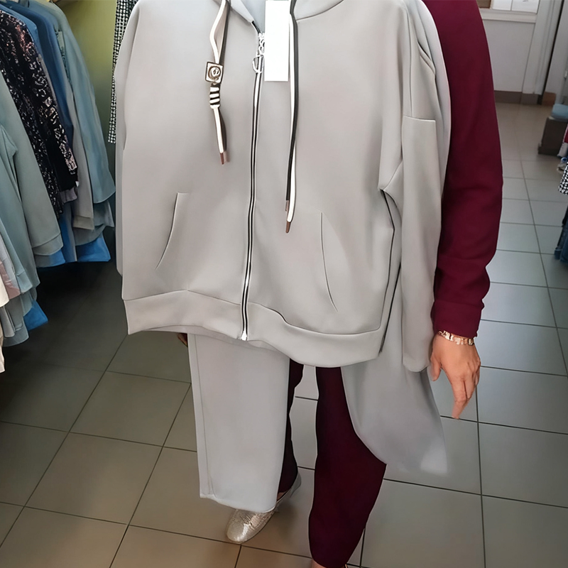 Förpackningen innehåller: 1 * Damers Moderiktiga Träningsset: Jacka med Dragkedja och Huva och Byxor