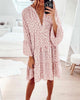 - Blush rosa crepe, tonala fläckar, klockärmar och volangiga nivåer gör det till ett sött sätt att bära det trendiga trycket.