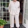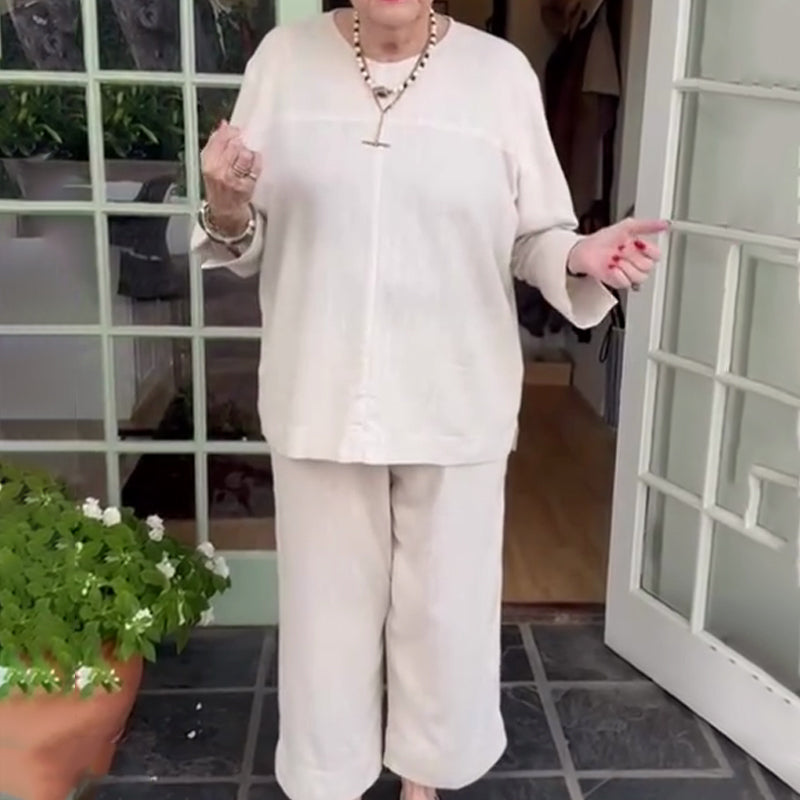 Mjukt och bekvämt enfärgat topp- och byxset för kvinnor