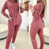 Tvådelat trendigt enfärgat set med huvtröja och byxor för kvinnor