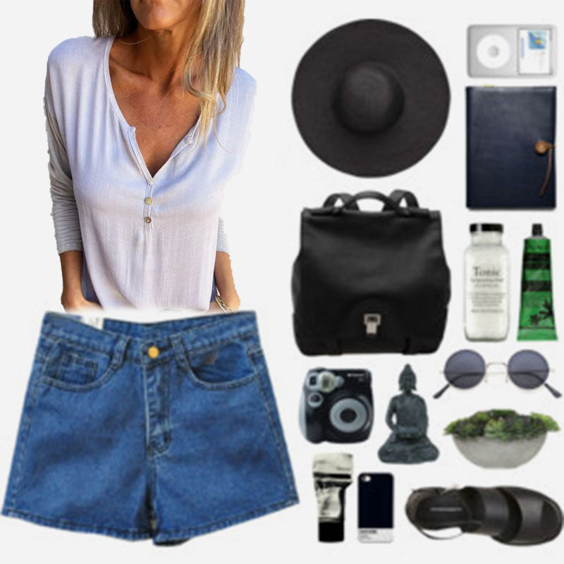 Lieferumfang: 1 * Trendiges, einfarbiges Langarm-Oberteil mit V-Ausschnitt für Damen