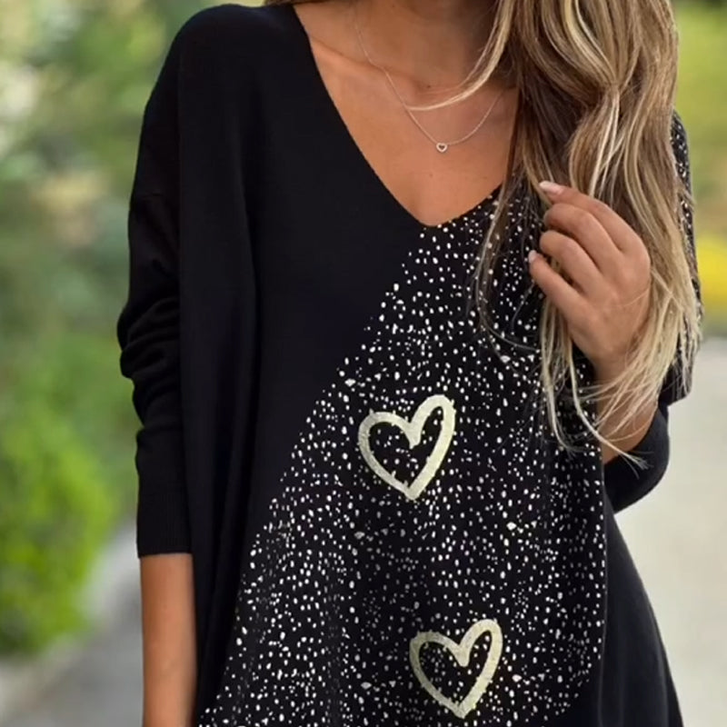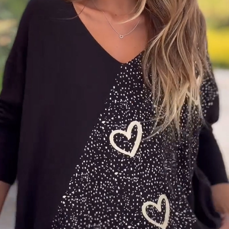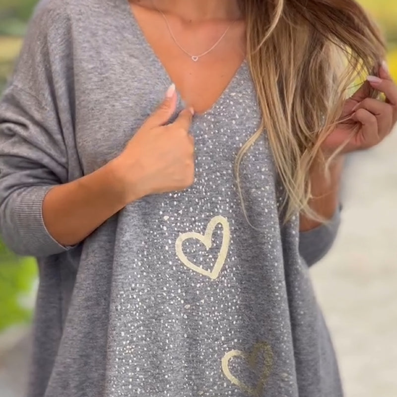 ROMANS MÖTER RADIANS - Det bedårande hjärtformade trycket, som är placerat för att tilltala både ögon och hjärtan, kommer att få dig att bli kär igen. Den perfekta mängden gnistrar tillförs av små, skimrande accenter. Det höjer ditt humör och tillför din dagliga stil mysighet, charm och en gnutta kärlek.