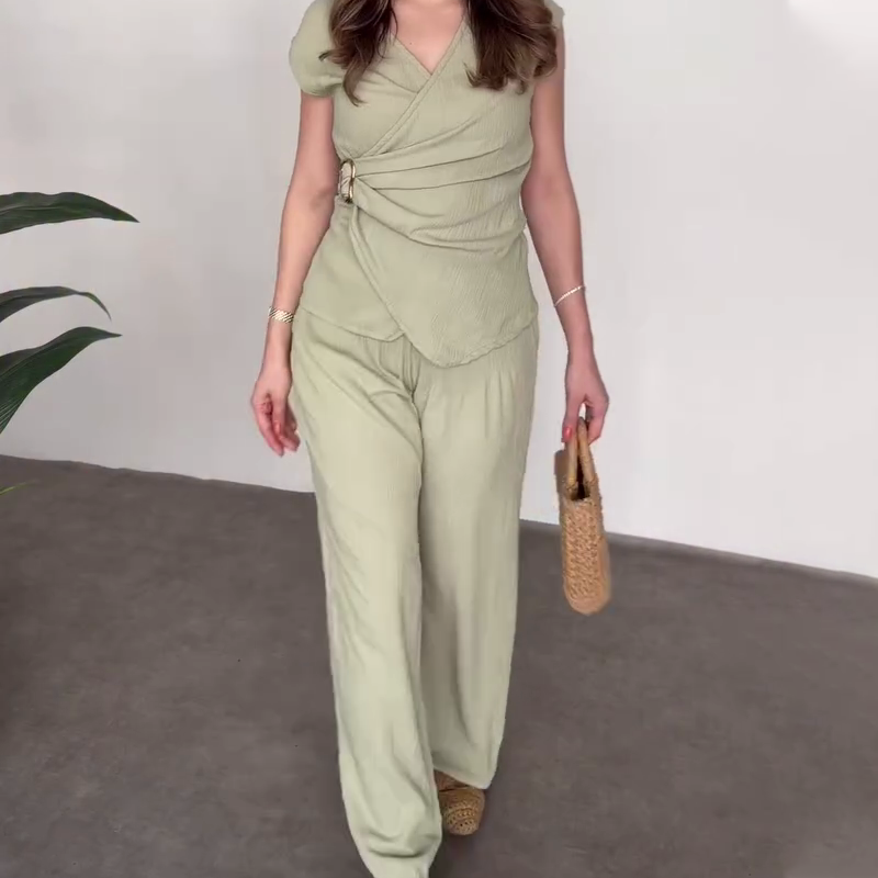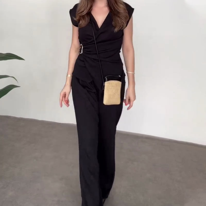 2-Delat Set med Topp och Byxor med V-Ringning för Kvinnor